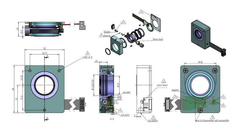 The RSC-103E motorized rotator allows very precise, continuous and smooth adjustment of the rotation angle from a computer or another electronic programmable machine.